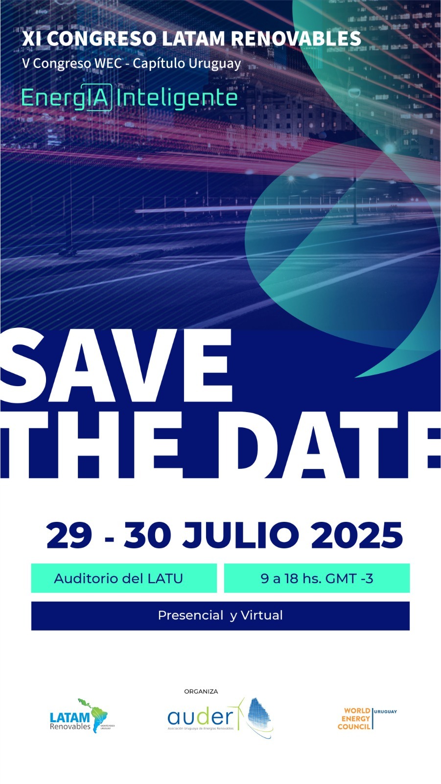 Hosted by the Uruguayan Member Committee of the World Energy Council and the Uruguayan Association of Renewable Energies (AUDER), which has been promoting the production and use of renewable energy since 2009, is pleased to invite you to the 11th LATAM Renewables Congress: “Smart EnergIA”.